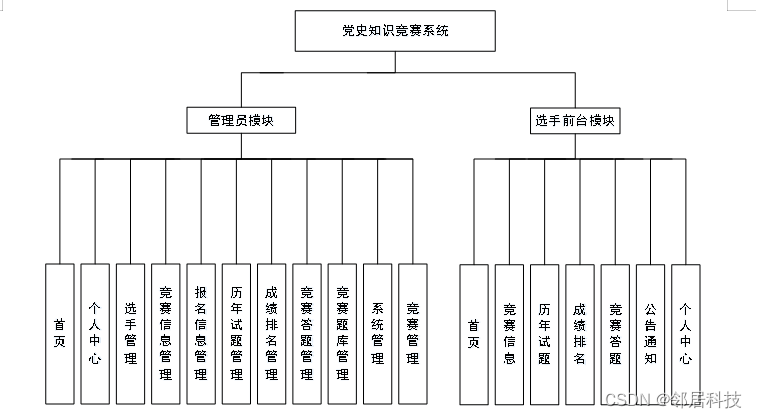 这些功能可以充分满足党史知识竞赛系统的需求。此系统功能较为全面如下图系统功能结构如图4-1所示。