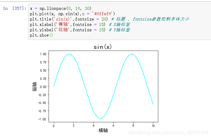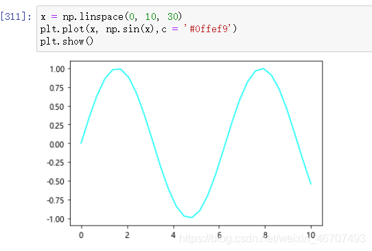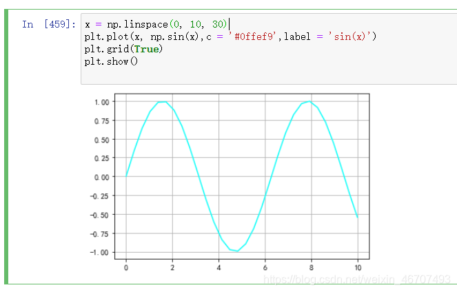 x = np.linspace(0, 10, 30) # x轴坐标值