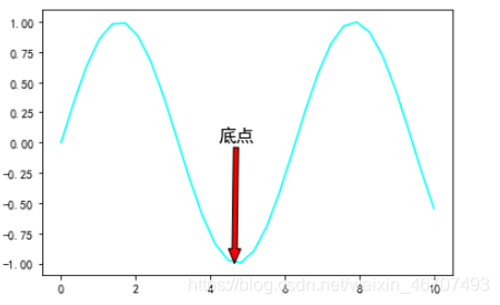 plt.annotate(text = '底点',xy = (4.65,-1),xytext = (4.2,0),
