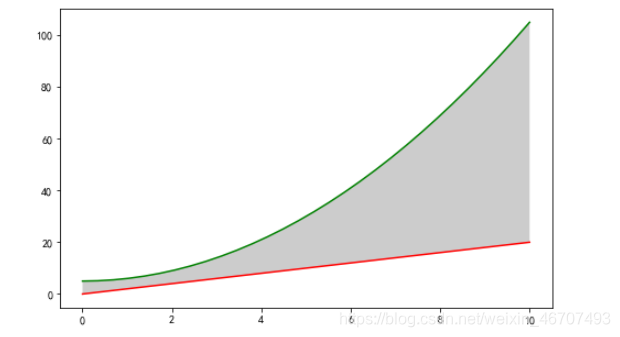 # 第一个参数表示要覆盖的左右范围,第二个参数表示覆盖的下限,第三个参数表示覆盖的上限,在这里则表示填充y1曲线和y2曲线中间的区域