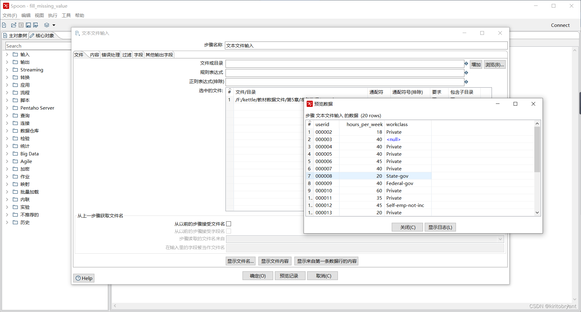 通过Kettle工具,使用平均值填充法对文件people_survey.txt中的缺失值进行填充。