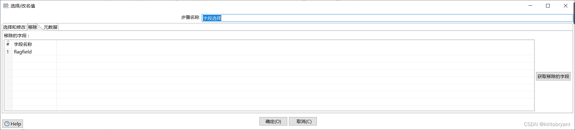 在“移除”选项卡处添加要移除的字段名称,这里移除的是字段flagfield。