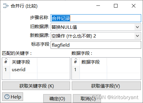在“旧数据源:”下拉框选择“替换NULL值”,“新数据源:”下拉框选择“空操作(什么也不做)2”;在“匹配的关键字:”部分,添加关键字段,即userid。