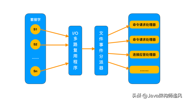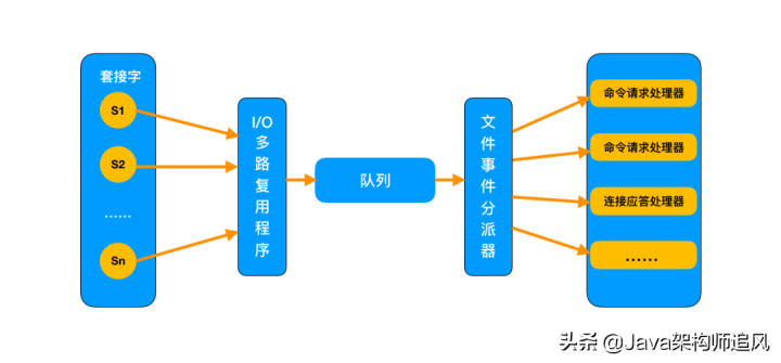 应对大量的请求,Redis 中使用 I/O 多路复用程序同时监听多个套接字,并将这些事件推送到一个队列里,然后逐个被执行。最终将结果返回给客户端。