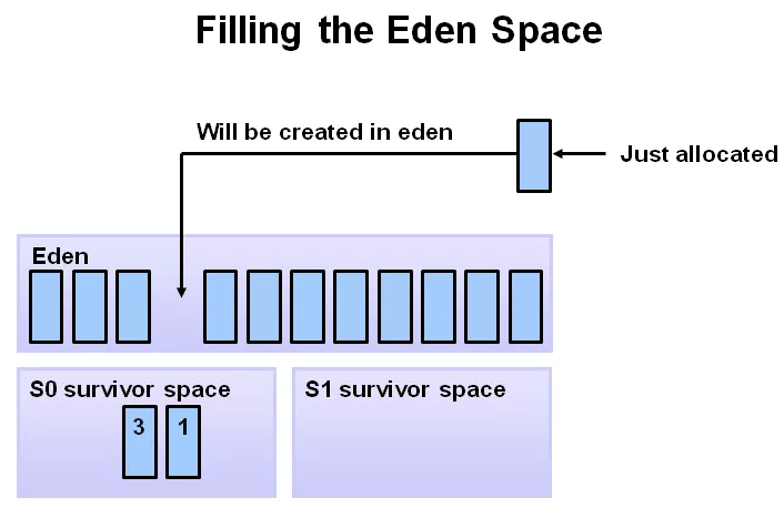 随着应用的运行,越来越多的对象被分配到 eden 区。