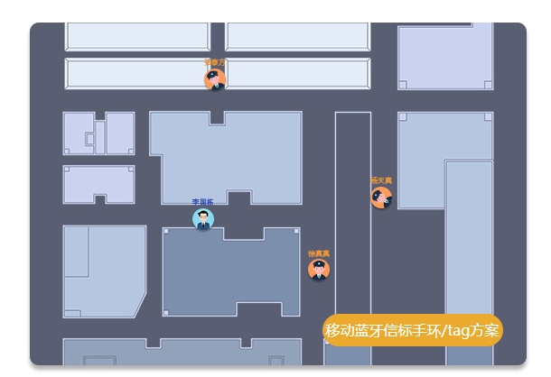 佩戴胸牌或手环的游客的位置和运动轨迹,会在后台地图上实时显示,被定位游客出现在非指定区域,系统会向后台和游客以震动、警告铃声、告警图标等形式发出报警提示。