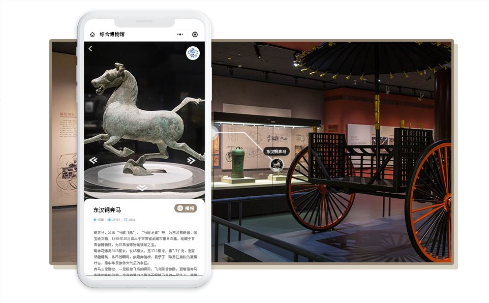 游客在720°的VR空间内,自由行走,浏览博物馆室内环境;对展品可进行360°自由旋转参观,同时展品信息以视频、图文、语音等形式进行展示。