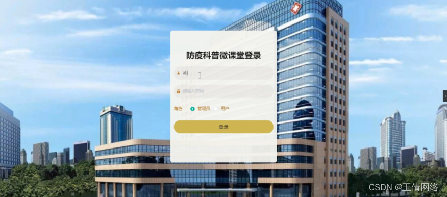 管理员登录,通过填写注册时输入的用户名、密码、角色进行登录,如图4-7所示。