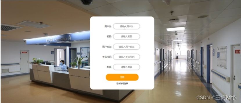 注册,在注册页面通过填写用户名、密码、用户姓名、手机号码、邮箱等信息完成注册,如图4-2所示。