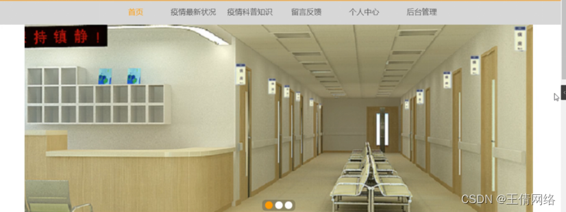 防疫科普微课堂,在系统首页可以查看首页、疫情最新状况、疫情科普知识、留言反馈、个人中心、后台管理等内容,如图4-1所示。