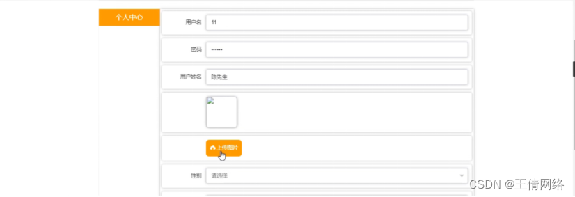 个人中心,在个人中心页面通过填写用户名、密码、用户姓名、性别、手机号码、邮箱等信息进行更新信息,如图4-6所示。