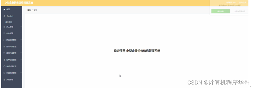 管理员登陆系统后,可以对首页、个人中心、员工管理、企业管理、商品信息管理、商品出库管理、商品入库管理、订单信息管理、售后处理管理、利润统计管理、系统管理等功能模块进行相应操作,如图5-9所示。