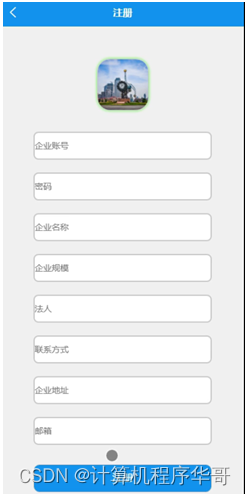 企业注册,在企业注册页面通过填写企业账号、密码、企业名称、企业规模、法人、联系方式、企业地址、邮箱等信息进行注册操作;如图5-3所示。