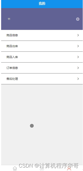 员工,在我的页面可以对商品信息、商品出库、商品入库、订单信息、售后处理等详细信息进行操作,如图5-7所示。