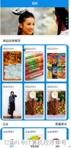 用户登陆系统后,可以对首页、商品信息、我的等功能模块进行操作,如图5-4所示。