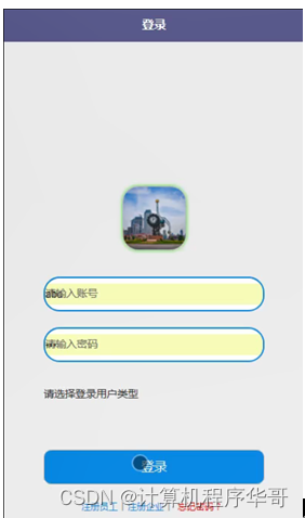 用户登录,用户通过输入账号和密码,选择角色并点击登录进行系统登录操作,如图5-1所示。