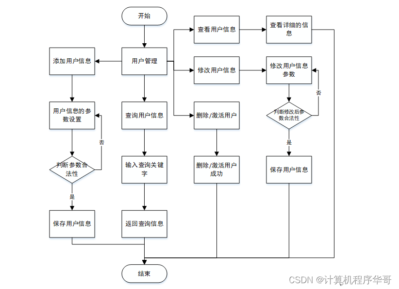 由于不同的系统实际使用用户角色的不同,他们的业务分析也会变得有所不一样,为了论述方便接下来都将以管理员用户功能权限下的系统业务流程来分析,如下图所展示: