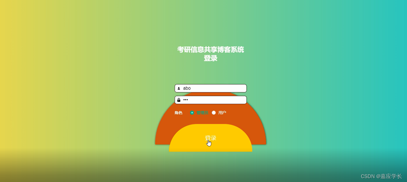 管理员要登录考研信息共享博客系统,需要输入用户名和密码,选择登录角色进行登录,管理员登录界面如图5-1所示: