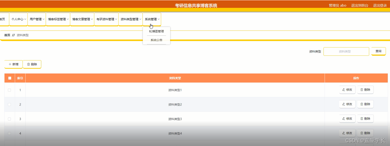 资料类型管理:在资料类型管理页面,可以新增资料类型等内容,以及对资料类型管理进行修改、删除等操作,如图5-7所示: