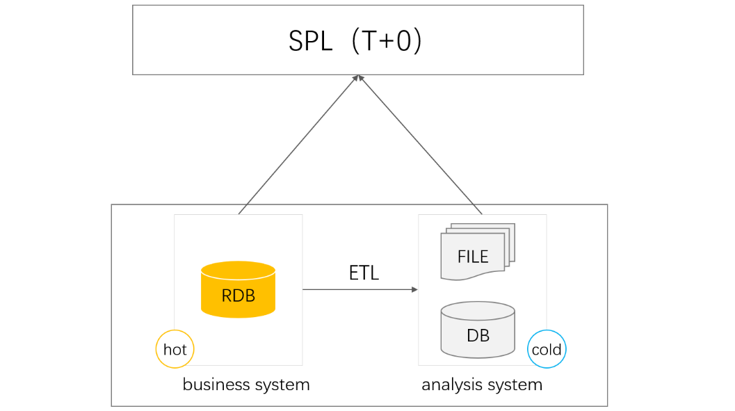 由于具备独立且完善的计算能力,SPL可以分别从不同的数据库取数计算,因此可以很好适应异构数据库的情况,还可以根据数据库的资源状况决定计算是在数据库还是SPL中实施,非常灵活。在计算实现上,SPL的敏捷语法与过程计算可以大大简化T+0查询中的复杂计算,提升开发效率,SPL解释执行支持热部署。更进一步,依托SPL的强计算能力还可以完成冷热数据分离时的ETL任务。