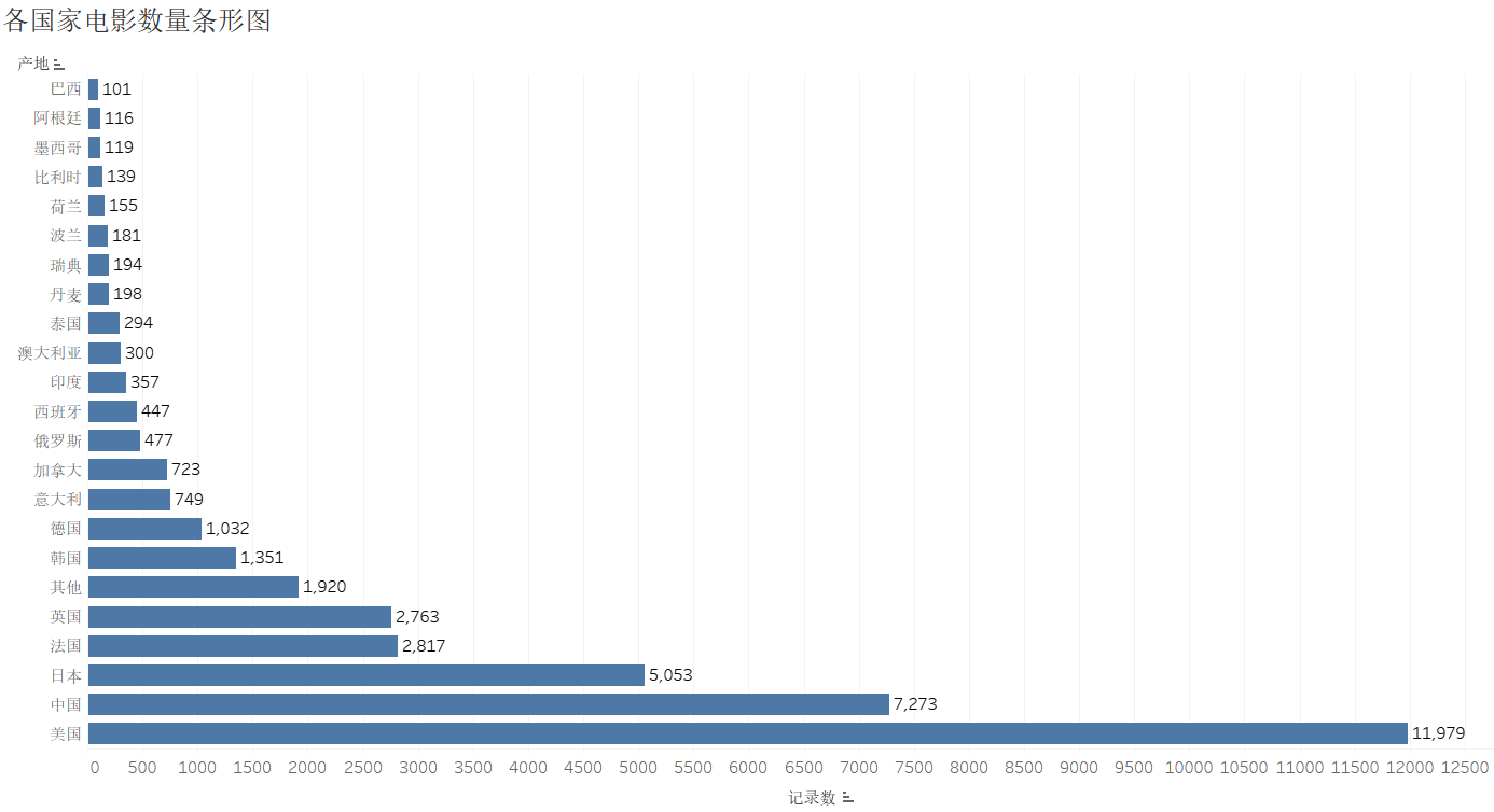 1.美国电影数量遥遥领先,是名副其实的电影大国