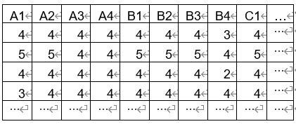 信度一般针对量表题进行分析,数据格式常见是一个量表题为一列,举例如下: