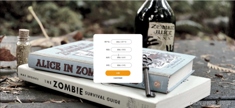 用户注册,在用户注册页面可以查看用户名、密码、姓名、手机等信息进行注册,如图5-2所示。