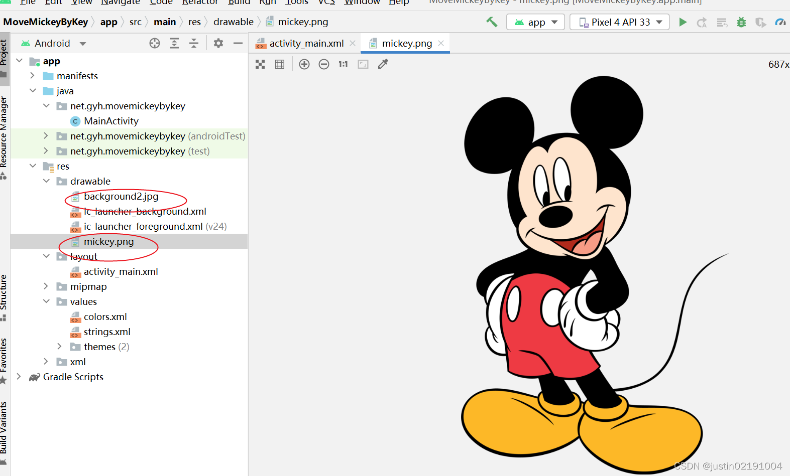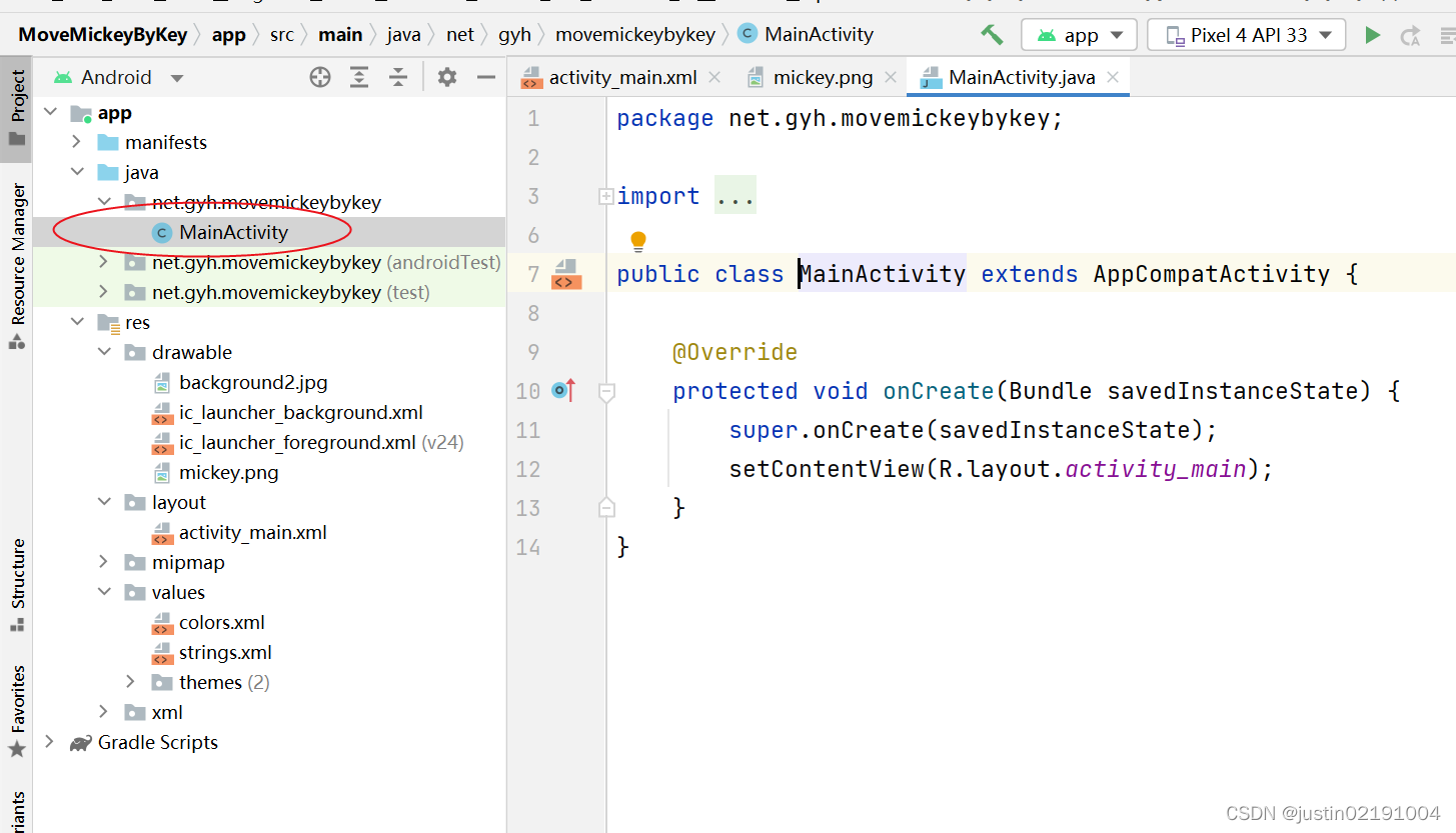 - 创建一个新的项目文件 MoveMickeyByKey