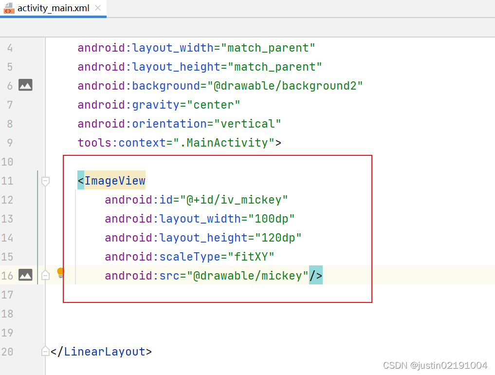 - 将默认的约束布局改成线性布局