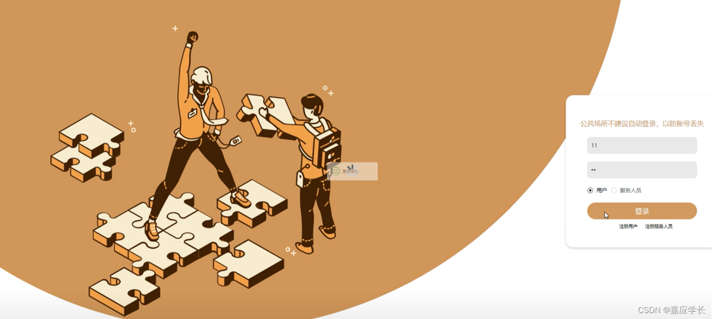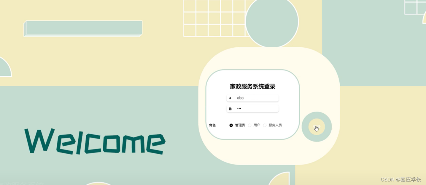 该界面是家政服务系统的首页,界面设置要求界面简洁明了、操作简单、兼容性好。在考虑设计界面时,首先要考虑界面标准化设计,其次是完善界面设计,但不要因对界面的美化使界面的操作变得复杂,用户可在此页面进行登录等操作,页面顶部导航条是各模块的入口。