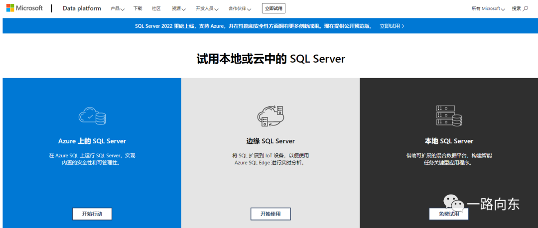 打开一搜索引擎,比如百度(www.baidu.com),搜索SQL Server官网(https://www.microsoft.com/zh-cn/sql-server/sql-server-downloads)。