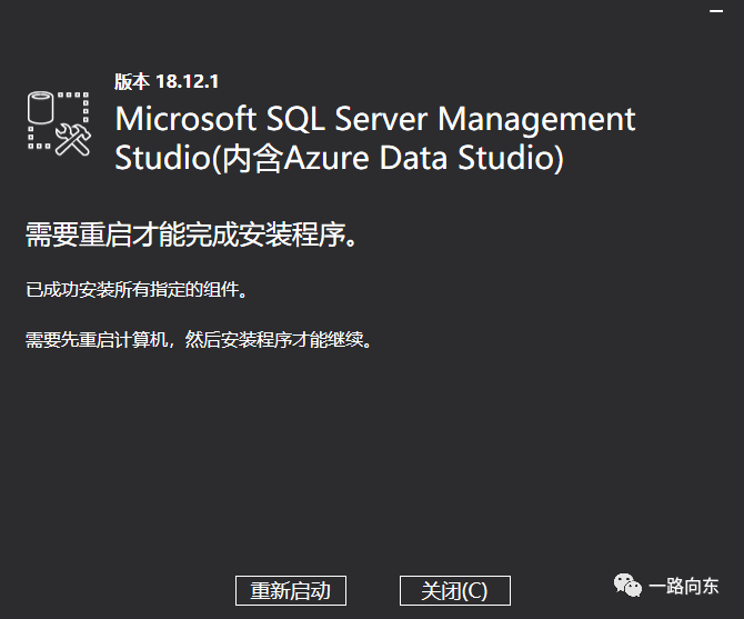 回到SSMS-Setup-CHS.exe执行文件,双击,然后点击重新启动。