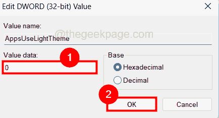 第 6步:双击AppsUseLightTheme DWORD 值以打开其编辑窗口。