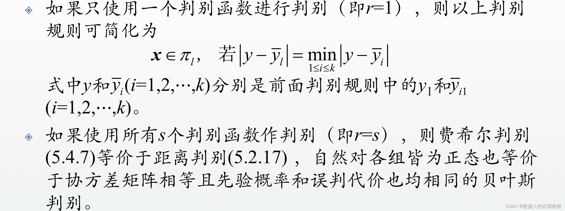 在许多情况下(如是大的),仅仅使用第一判别函数也许不够,应考虑建立