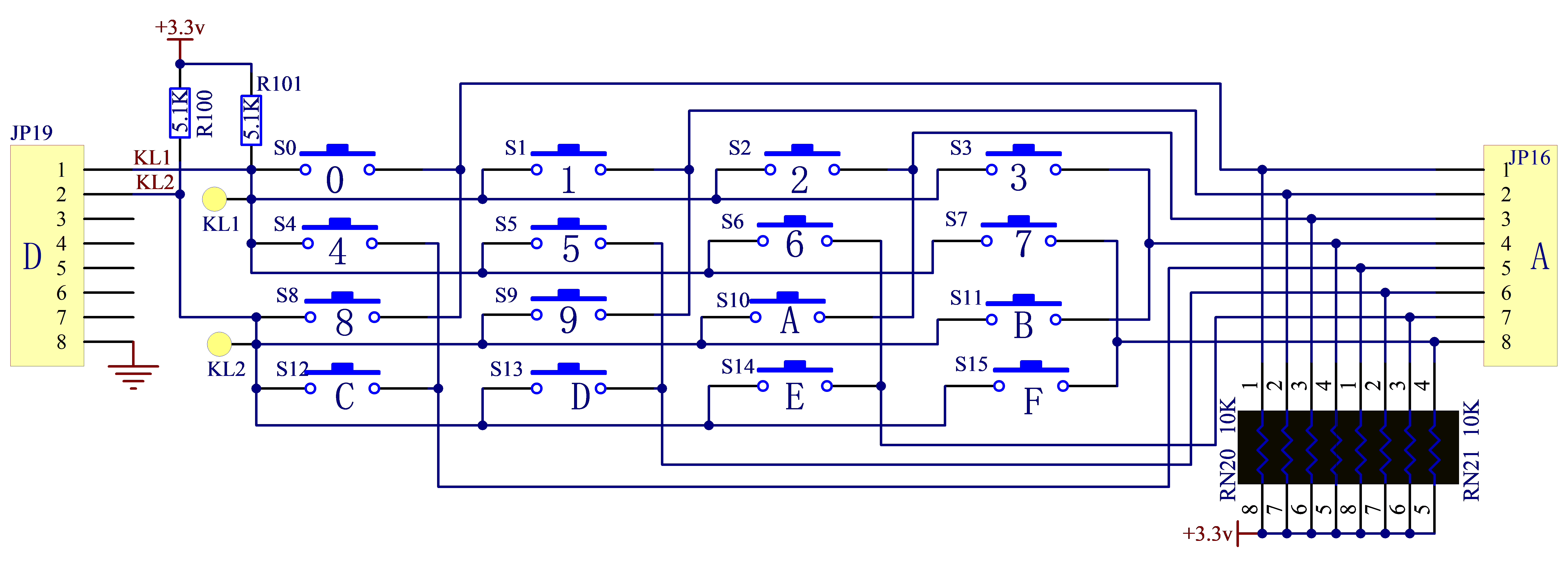 矩阵键盘原理图: