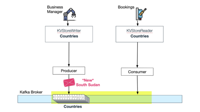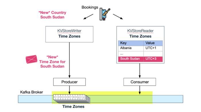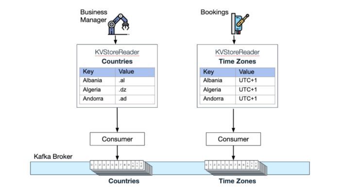 每个 In-memory KV Store 及其各自的压缩 Kafka 主题 Wix Bookings侦听“支持的国家/地区”主题的更新: