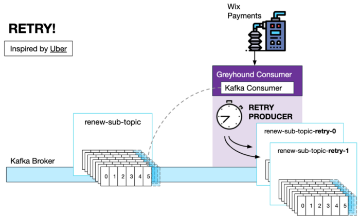 配置重试策略后,Greyhound Consumer 将创建与用户定义的重试间隔一样多的重试主题。内置的重试生产者将在出错时生成消息到下一个重试主题,并带有一个自定义标头,指定在下一次处理程序代码调用之前应该发生多少延迟。 对于所有重试尝试都已用尽的情况,还有一个死信队列。在这种情况下,消息被放入死信队列,供开发人员手动查看。 这种重试机制的灵感来自这篇uber 文章。 Wix 最近开源了Greyhound,很快就会对 beta 用户开放。要了解更多信息,您可以阅读 github自述文件。 概括: