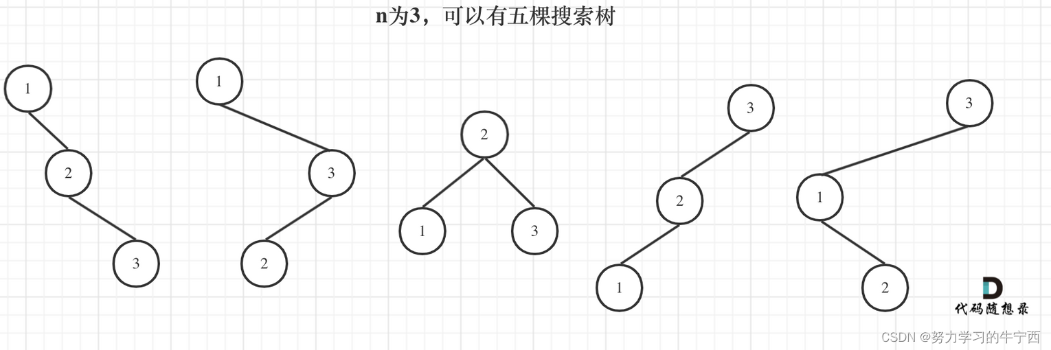 dp[3],就是 元素1为头结点搜索树的数量 + 元素2为头结点搜索树的数量 + 元素3为头结点搜索树的数量;