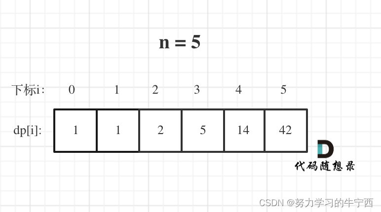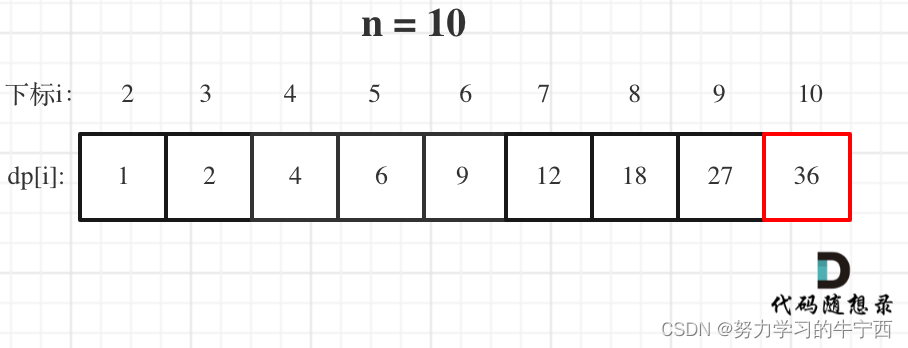 其中 n 是给定的正整数。创建一个数组dp,其长度为 n+1;