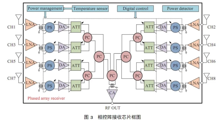 随着半导体技术和封装技术的发展,集成式模拟波束成型IC应运而生,即相控阵芯片。这些芯片的主要功能是准确设置每个通道输出信号的相对幅度和相位。在这方面,国内的紫金山实验室研制出了超低成本CMOS工艺毫米波芯片: