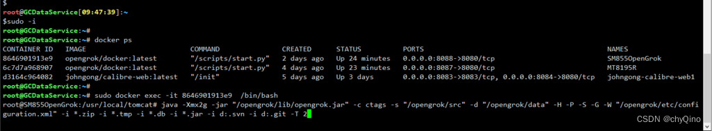 sudo docker exec -it SM855OpenGrok /bin/bash # 进入容器