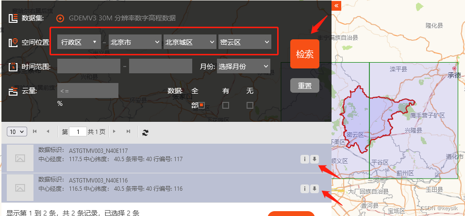 选择行政区-检索-点选合适的区域后点击下载,解压后的数据就是我们需要的DEM数据
