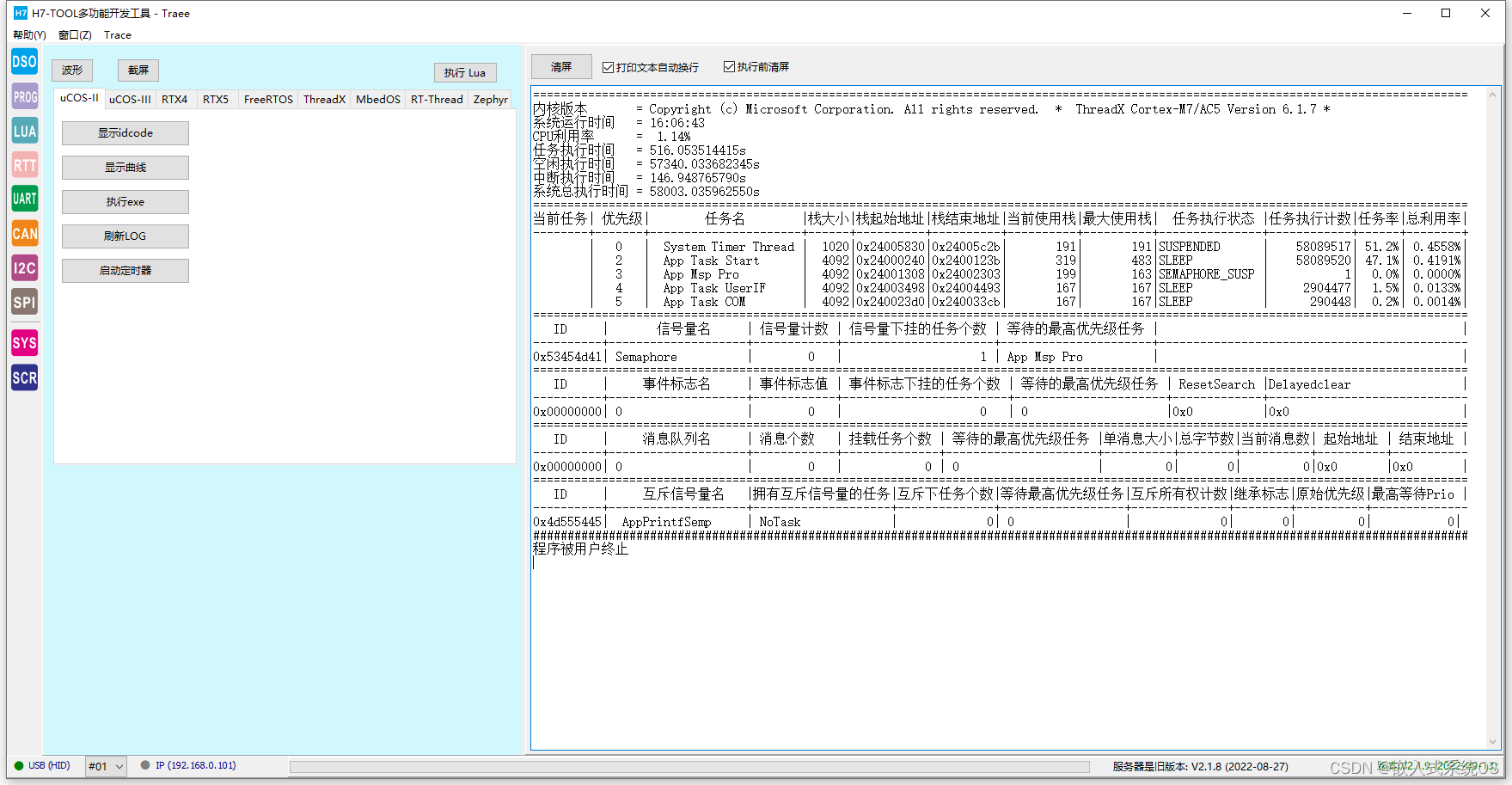 (2)完成H7-TOOL的RTX5内核Trace功能,含任务执行情况和信号量,互斥信号,消息队列,事件标志组.