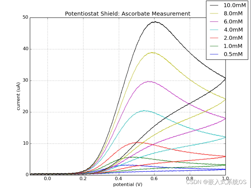电流测量范围:+/- 1, 10, 100, 1000uA