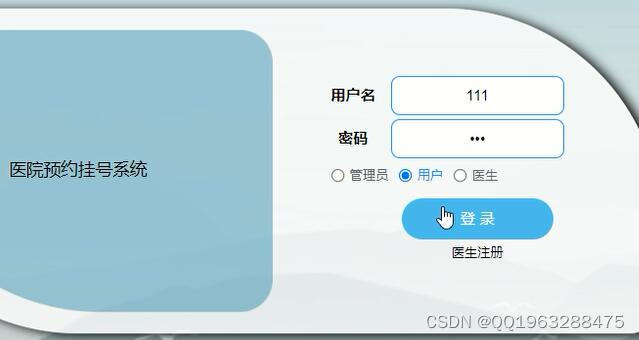 本系统主要包括管理员,用户和医生三个角色;主要包括:主页,个人中心、用户管理、医生管理、门诊信息管理、预约挂号管理、取消预约管理、改约通知管理、留言板管理、系统管理等功能的管理系统。