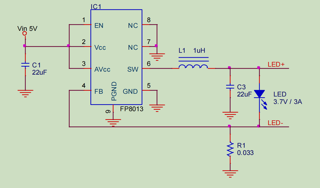➢ IC1:FP8013 降壓 LED 驅動 IC。