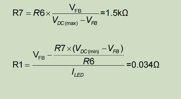 調整 LED 電流,電路與公式如下。