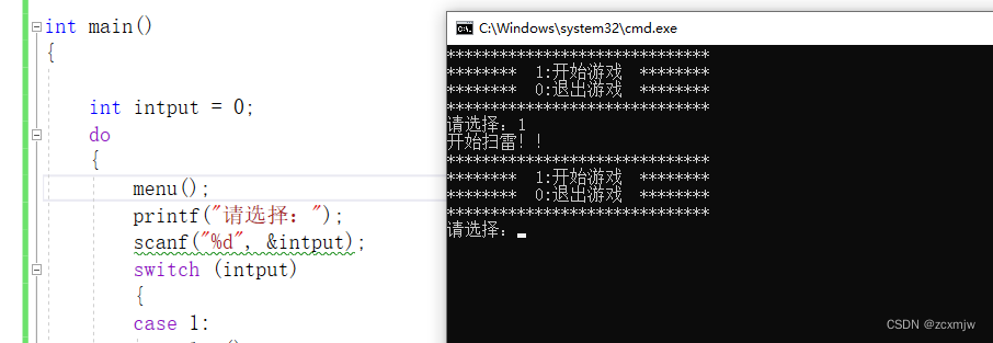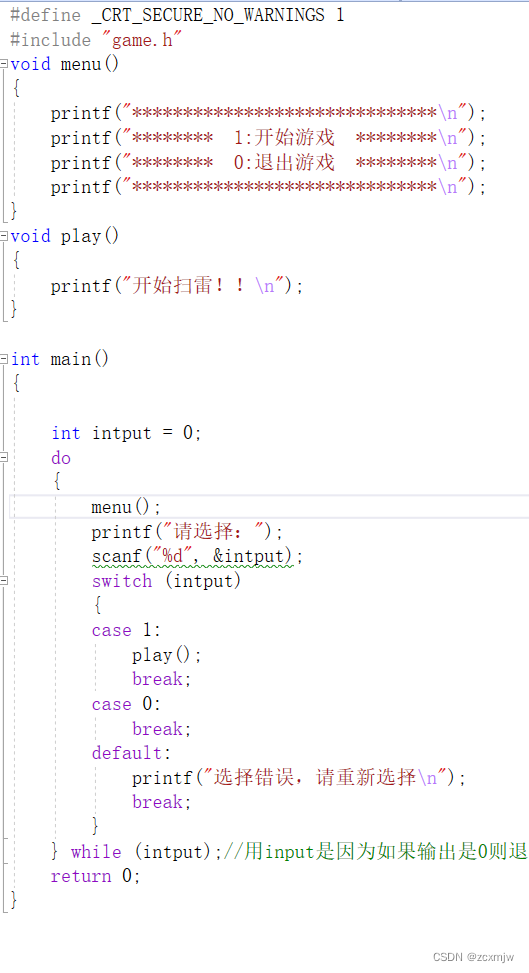 } while (intput);//用input是因为如果输出是0则退出,其他的无论是1还是其他都会重新进入