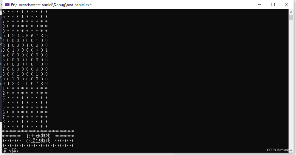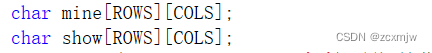 2、初始化棋盘,mine我们选择初始化为0,然后雷为1:show我们选择初始化为*,排雷后根据周围雷的数量输入具体数字。