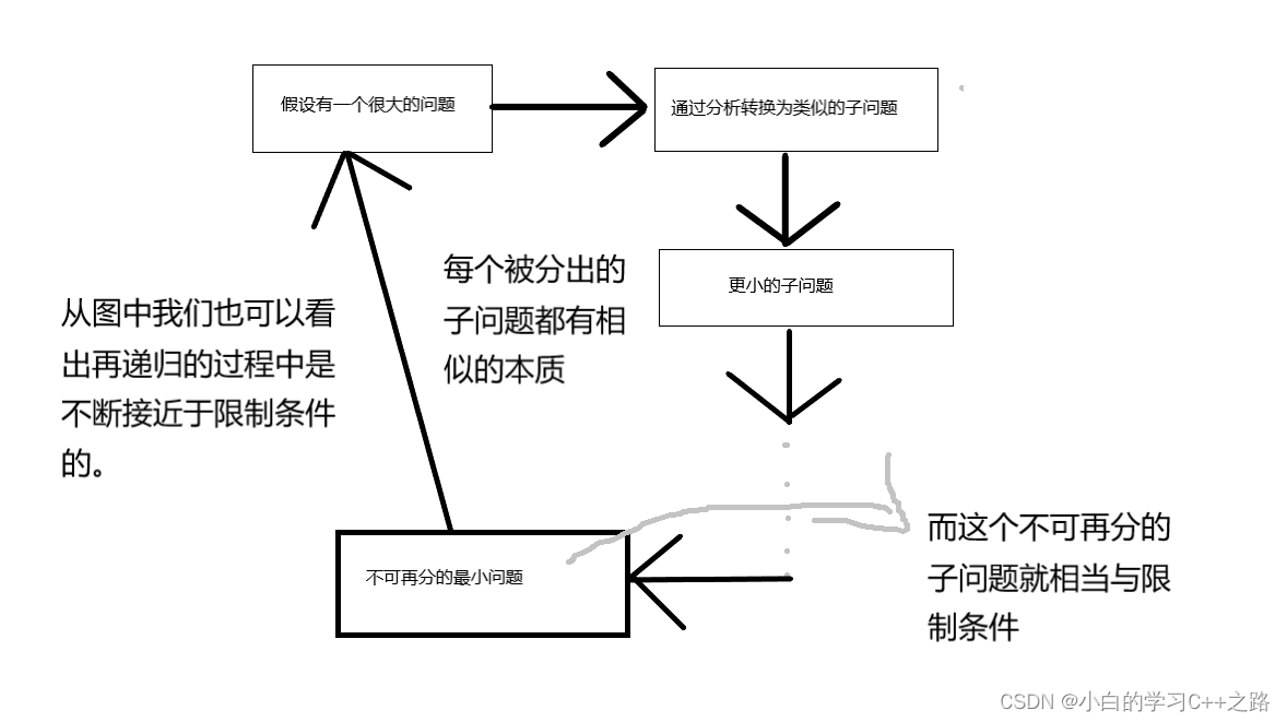 2.每次递归的过程中必须越来越接近这个限制条件